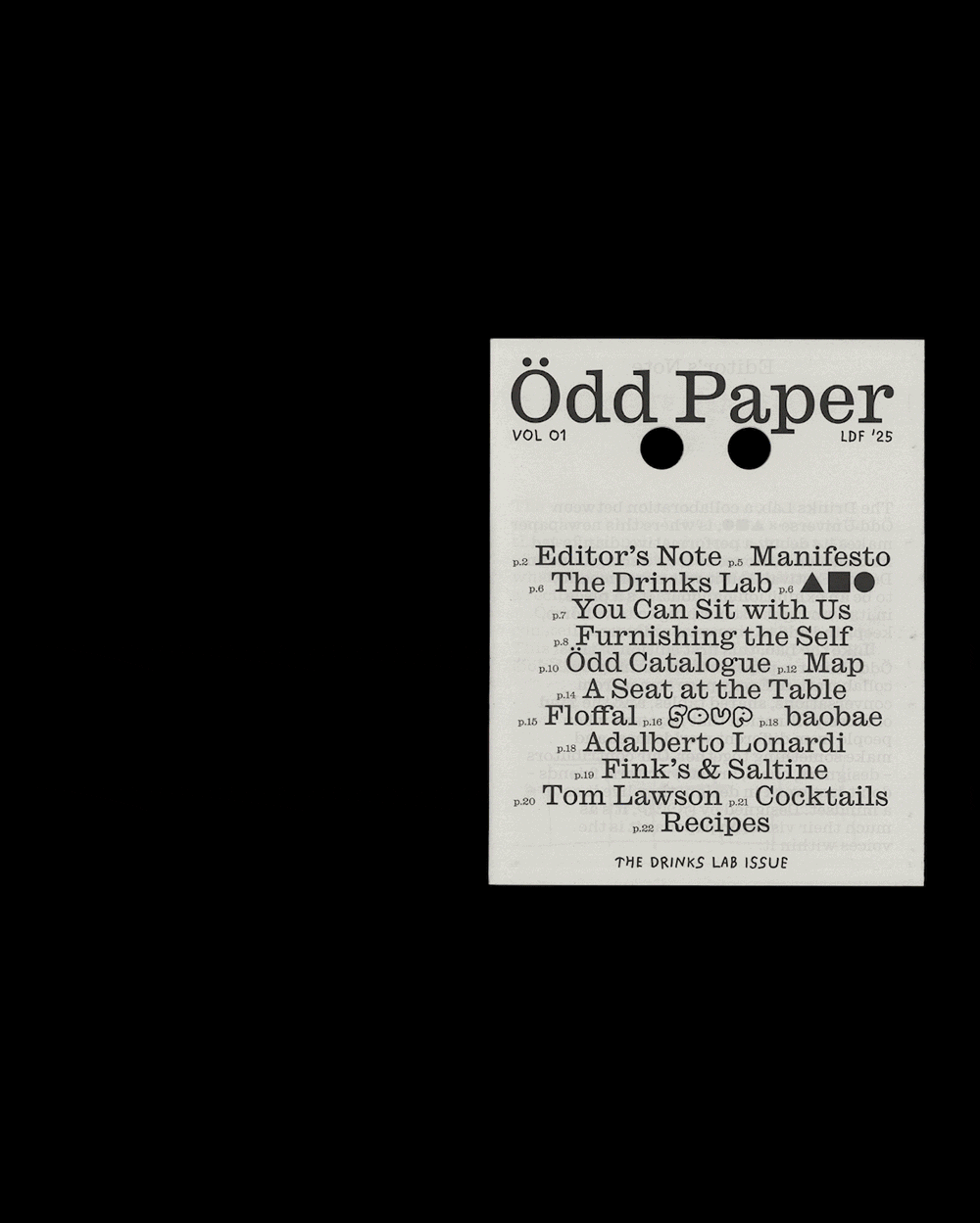 SOUP designed the first issue of Ödd Paper, a newspaper launched at Ödd Üniverse’s LDF 2025 event – The Drinks Lab.
